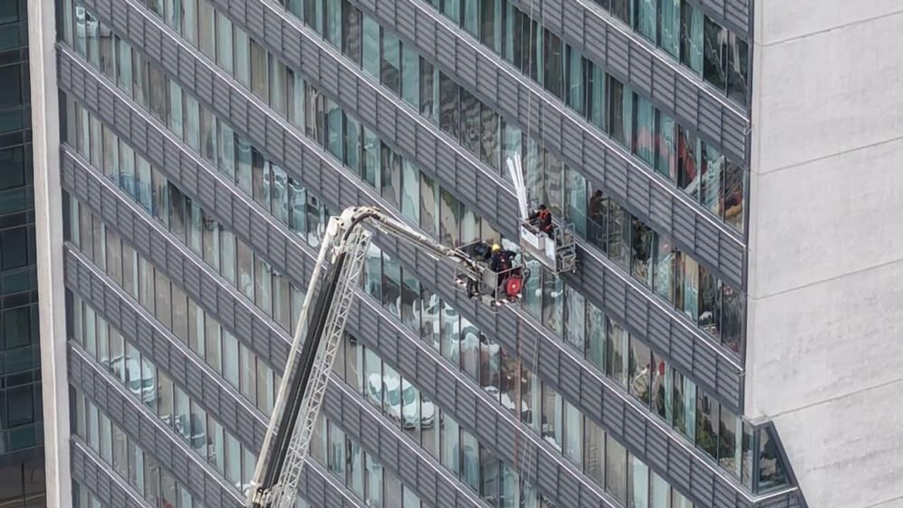İtfaiye sepetiyle aşağıya indirilen işçilerin sağlık durumunun iyi olduğu belirtildi. Polis ekipleri olayla ilgili soruşturma başlattı. Yüzlerce kişi de kurtarma operasyonunu meraklı gözlerle izledi.