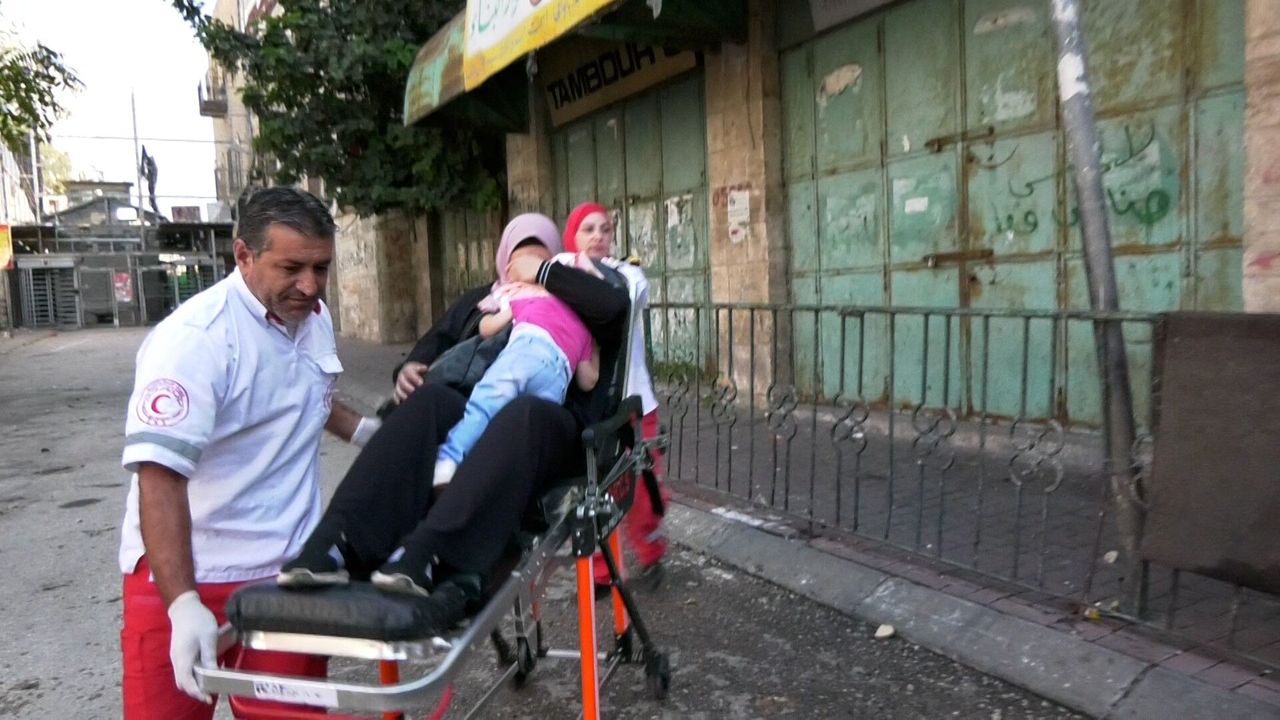 Batı Şeria'nın El Halil kentinde evlerin üstünde bekleyen İsrail askerleri, kendilerine taş atan Filistinlilere ateş açtı. Çatışmada anne ve çocuğu yaralandı.