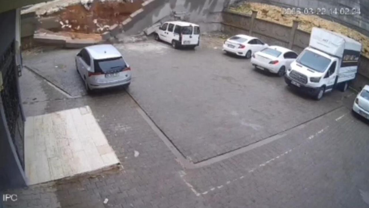 Olayda herhangi bir can kaybı ya da yaralanmanın yaşanmadığı öğrenilirken, yaşanan çökme anı binanın güvenlik kamerasına yansıdı.