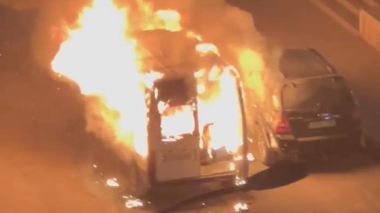 Edinilen bilgiye göre, sokak üzerinde park halinde bulunan minibüs, henüz belirlenemeyen bir nedenle yanmaya başladı. Kısa sürede büyüyen yangın, minibüsü tamamen sardı ve araç adeta alev topuna dönüştü.