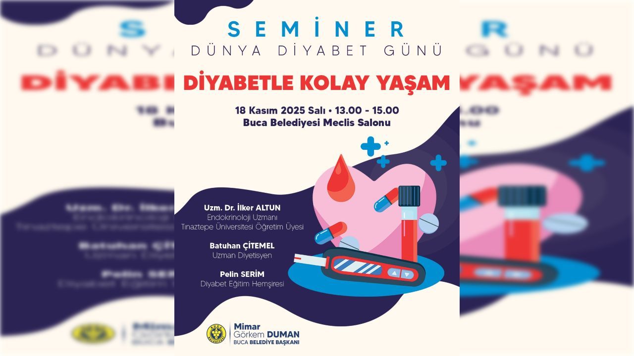 Buca Belediyesi, diyabet vakalarına dikkat çekmek ve halkı bilinçlendirmek amacıyla “Diyabetle Kolay Yaşam” adlı seminer düzenliyor. Etkinlik, 18 Kasım Salı günü gerçekleştirilecek.