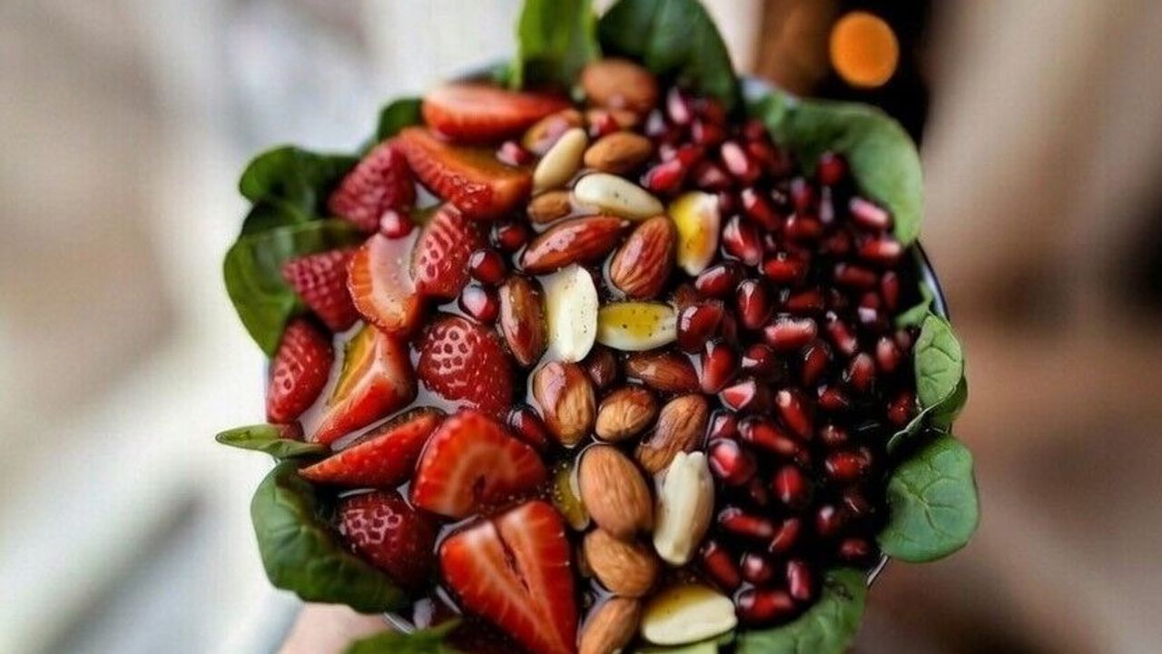 İftar sofralarında hafif başlangıçlar tercih edenler için alternatif olarak görülen bu salata, meyve ve kuruyemişlerin birlikte kullanılmasıyla dikkat çekiyor. Özellikle nar ve çileğin verdiği aroma, salataya farklı bir tat katarken file badem ise çıtır bir dokunuş sağlıyor.