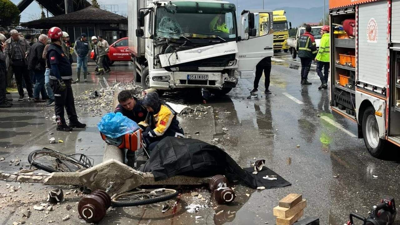 İhbar üzerine olay yerine sağlık ekipleri, jandarma ve Aydın Büyükşehir Belediyesi İtfaiye ekipleri sevk edildi. Ekiplerin yaptığı incelemede, beton direğin altında kalan bisiklet sürücüsünün olay yerinde hayatını kaybettiği belirlendi. Hayatını kaybeden kişinin kimliğinin henüz tespit edilemediği öğrenildi.