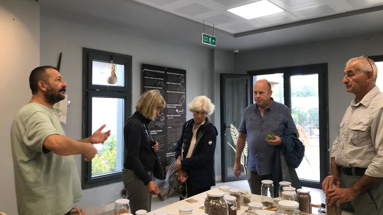 Ziyaretin devamında grup, Efes Tarlası Yaşam Köyü bünyesindeki Toprak Okulu’nu gezerek burada düzenlenen eğitim programları hakkında bilgi aldı. Ardından Tohum Merkezi’ni gezen ziyaretçiler, yerel tohum çeşitlerini inceledi ve kendi ülkelerindeki benzer çalışmalarla ilgili deneyimlerini paylaştı.