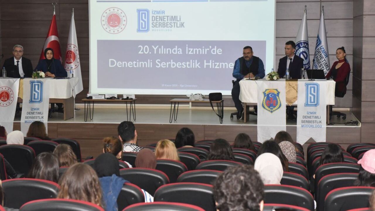 Ege Üniversitesi Edebiyat Fakültesi Sosyoloji Bölümü tarafından düzenlenen “20. Yılında İzmir’de Denetimli Serbestlik Hizmetleri” paneli, alanında uzman isimleri akademiyle buluşturdu. Öğr. Gör. Dr. Cem Özdemir’in moderatörlüğünde gerçekleşen etkinlikte; Denetimli Serbestlik Kurum Müdür Vekili Sinem Solak, İnfaz Koruma Memurları Ömer Erdoğan ve Metin Önay ile Sosyal Çalışmacı Ezgi Baltalı konuşmacı olarak yer aldı.