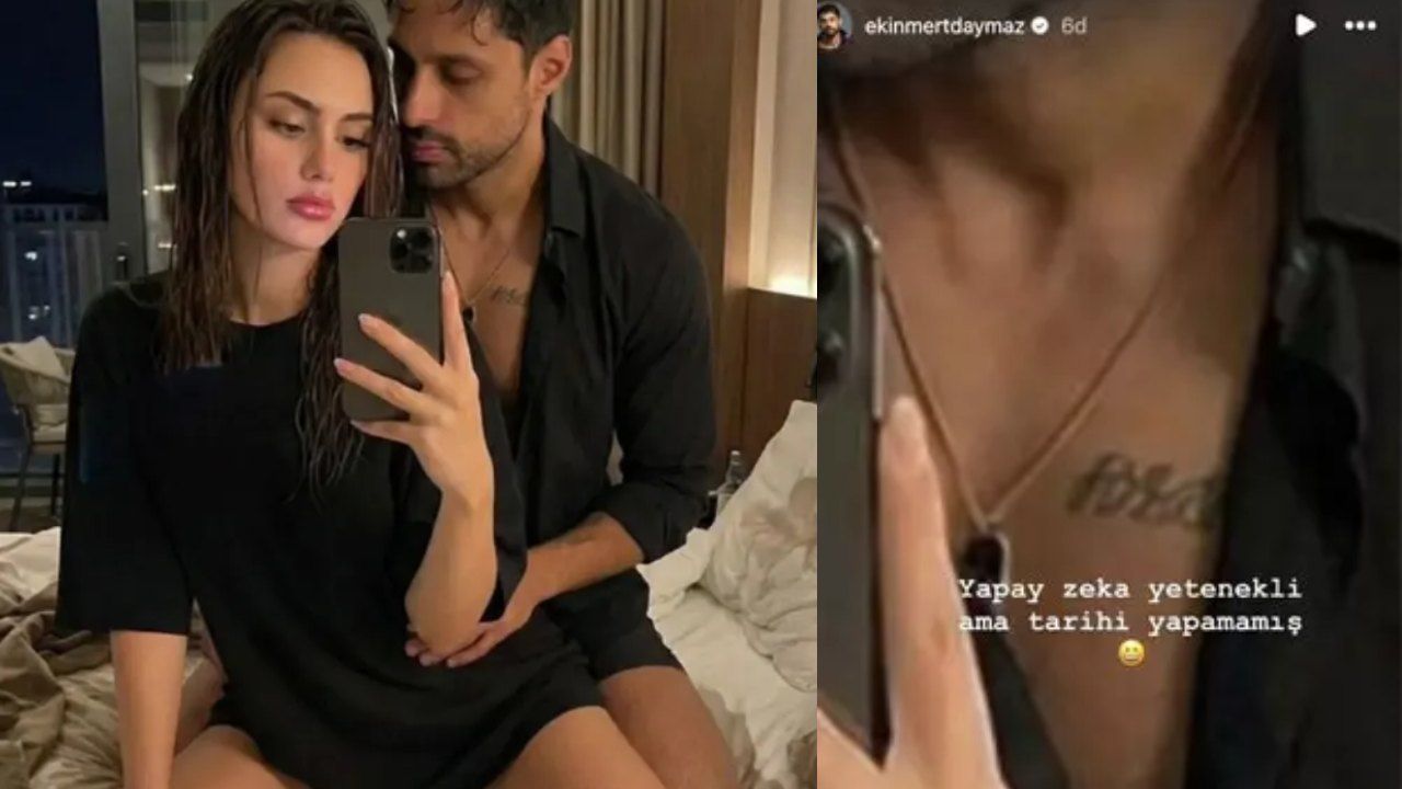 Ekin Mert Daymaz, sosyal medyada yayılan ve sevgilisiyle yatak odasında çekildiği iddia edilen fotoğrafın yapay zeka ürünü olduğunu açıkladı. Oyuncu, göğsündeki dövmedeki tarih hatasını göstererek görüntünün gerçek olmadığını duyurdu.
