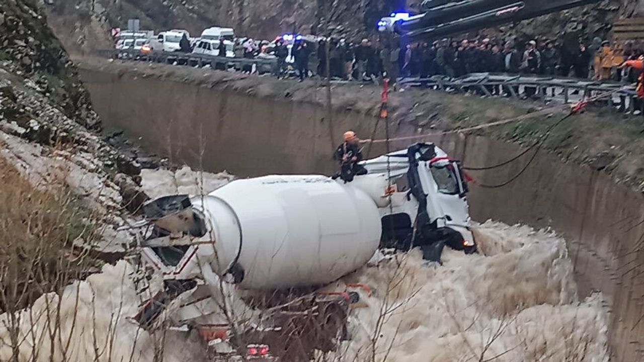 Bitlis'in Tatvan-Hizan kara yolunda kontrolden çıkan beton mikseri dereye uçtu. Akıntıya kapılan sürücü Engin Aras için bölgeye çok sayıda ekip sevk edildi, arama çalışmaları sürüyor.