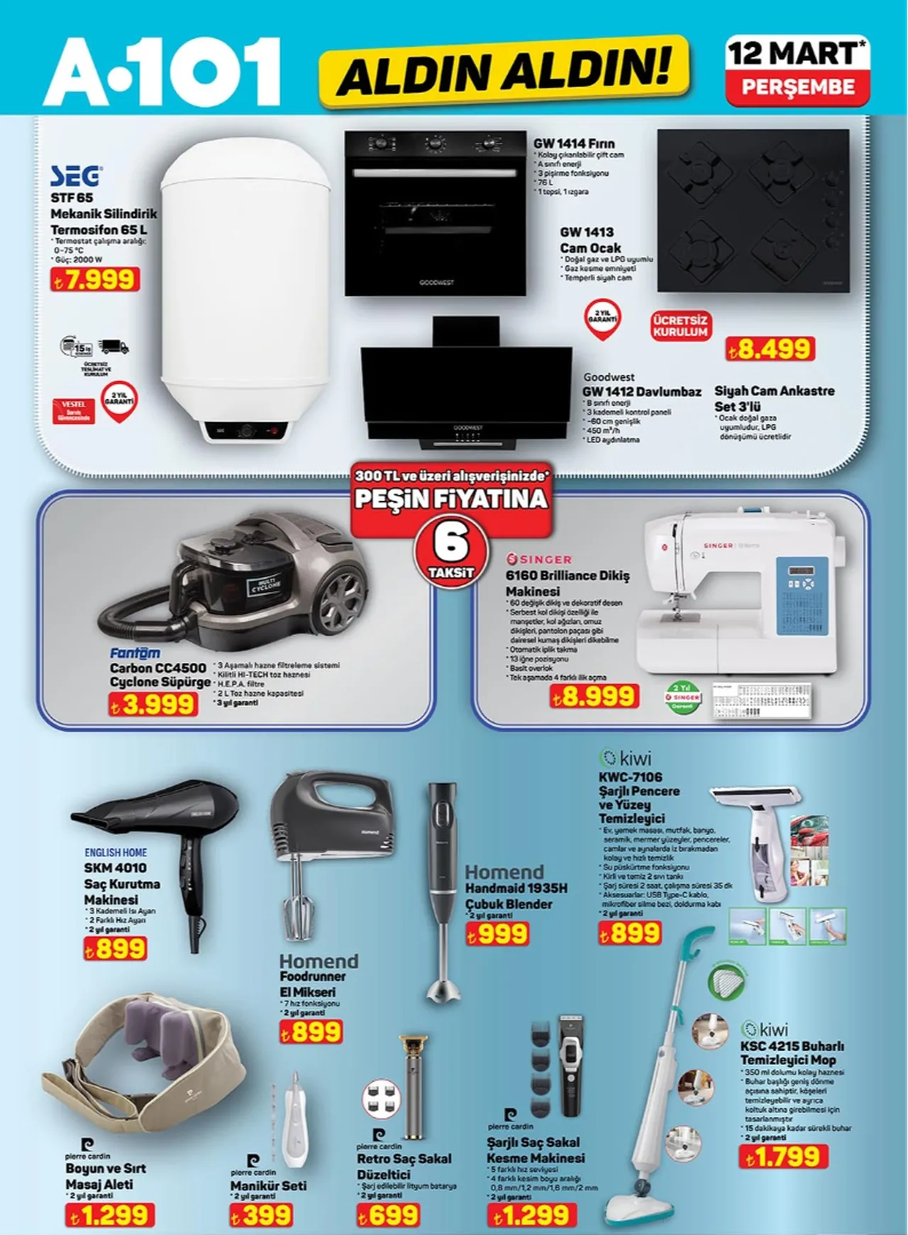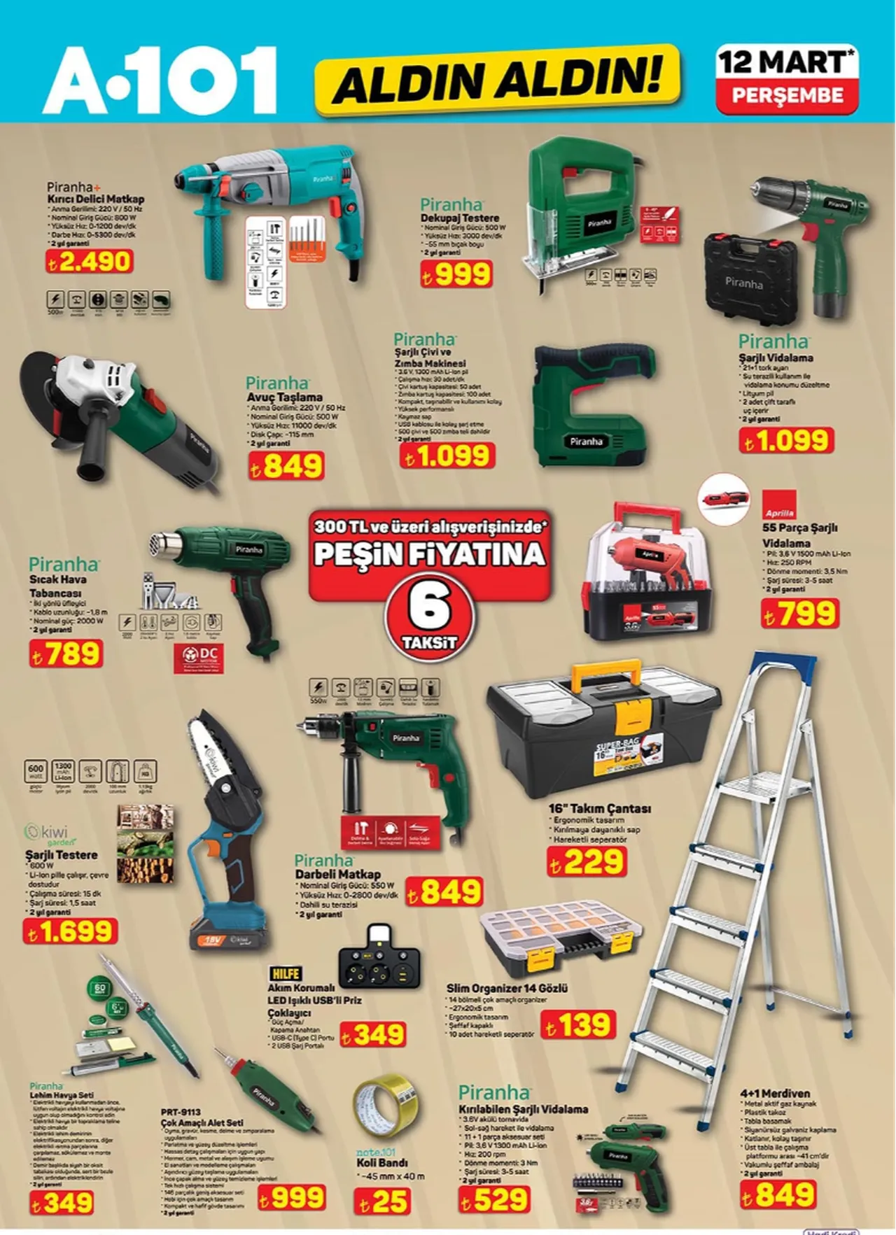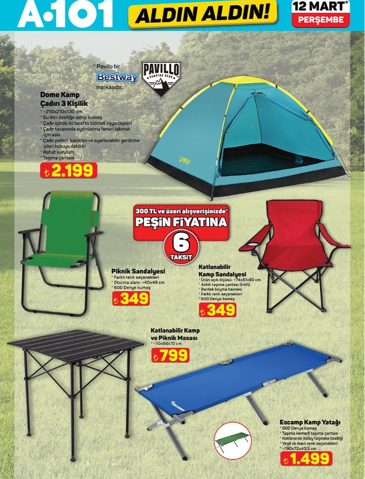 A101, 12 Mart 2026 tarihli aktüel ürünler kataloğunda yer alan indirimli ürünleri duyurdu. Bu hafta mağazalarda moped, ankastre set, kamp ekipmanları ve farklı ev gereçleri satışa sunulacak.