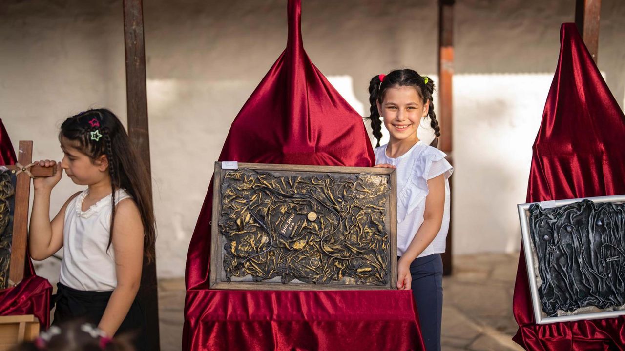 Öğrenciler, sınıf öğretmenleri Mustafa Kaya nezaretinde, kartonlardan pet şişelere, bardaklardan şişe kapaklarına ve hatta ağaç yapraklarından poşetlere kadar çeşitli atık malzemeleri kullanarak özgün eserler yarattılar.