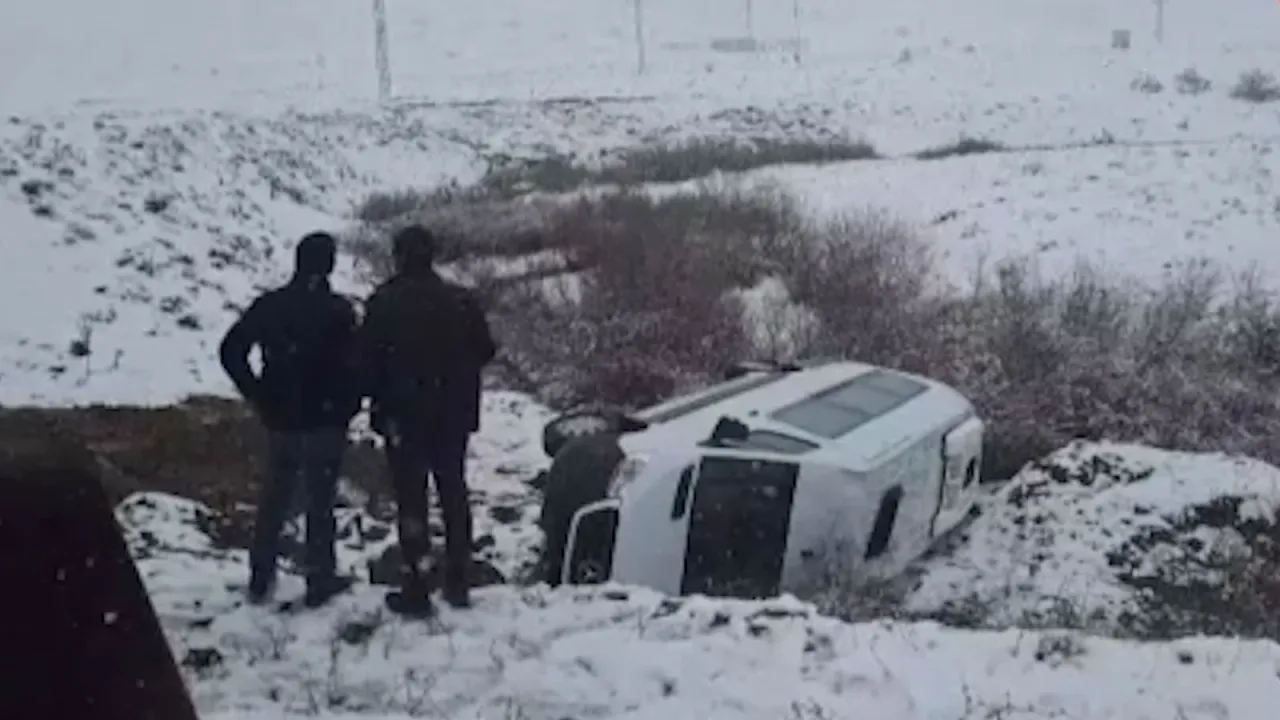Bingöl’de işçileri taşıyan minibüs, sürücüsünün kayganlaşan yolda direksiyon hakimiyetini kaybetmesi sonucu şarampole yuvarlandı. Kazada 2’si ağır 9 kişi yaralandı.