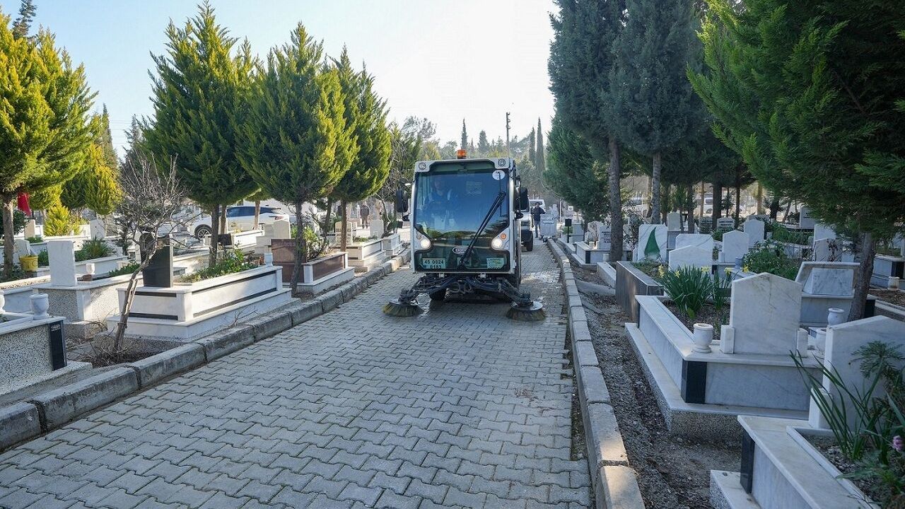 Gaziemir Belediyesi ile İzmir Büyükşehir Belediyesi, Ramazan Bayramı öncesinde ilçedeki mezarlıklarda geniş kapsamlı temizlik çalışması yürüttü. Sarnıç, Eski Gaziemir ve Yeni Gaziemir mezarlıklarını kapsayan çalışmalarda alanlar süpürülerek atıklardan arındırıldı. Mezarlık içi yollar süpürge araçları ve tazyikli suyla temizlenirken, kabir çevreleri de detaylı şekilde düzenlendi.