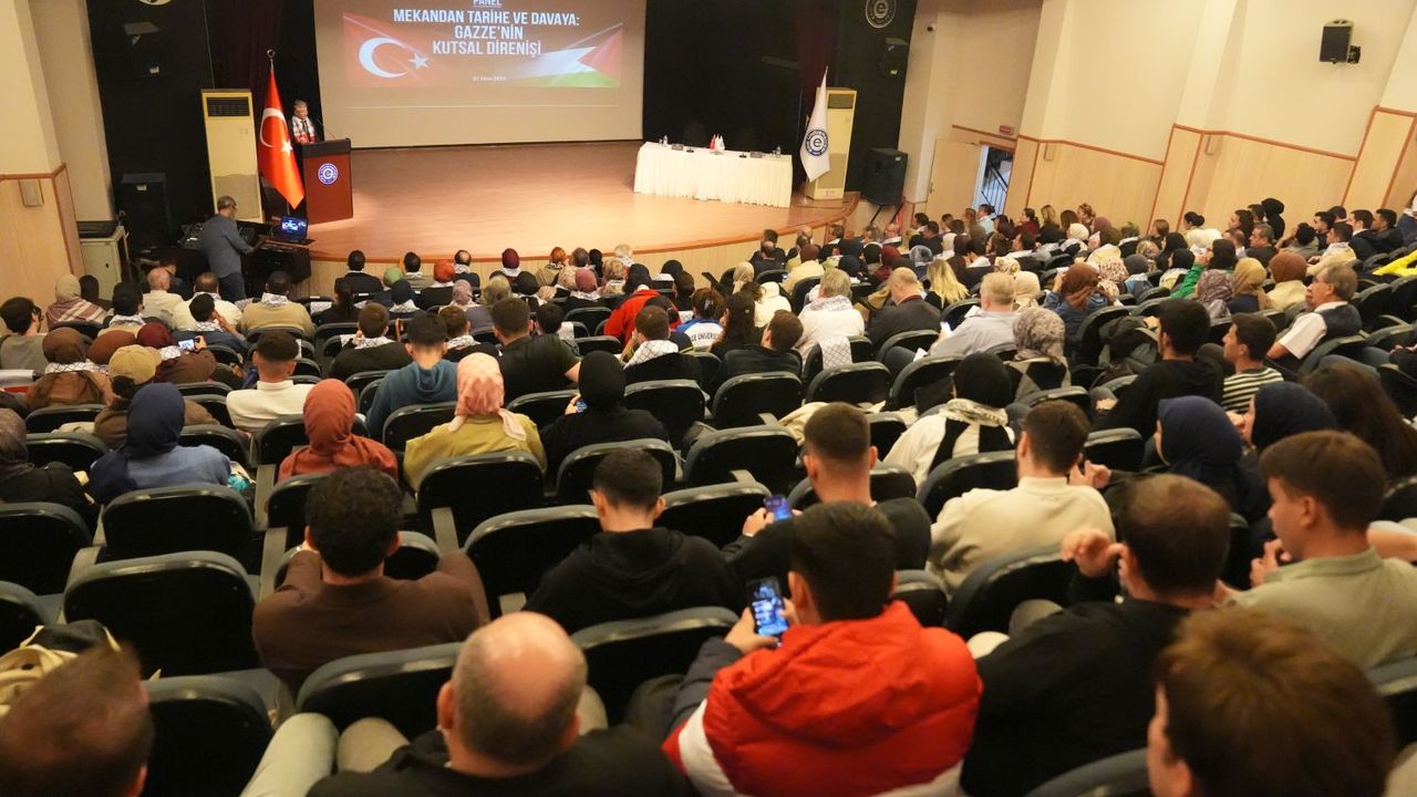 Panelin ilk konuşmacısı Prof. Dr. Muhammet Hanefi Palabıyık, “Mekândan Coğrafyaya, Coğrafyadan Kutsala” başlıklı sunumunda, Gazze’nin mekânsal kimliğinden tarihî ve kutsal bir simgeye dönüşümünü anlattı. Modern çağda kutsalın mekânsal temsiline yönelik zayıflamanın, Filistin’de direnişle yeniden canlandığını söyleyen Palabıyık, Kudüs ve Gazze’nin yalnızca inancın değil, insanlık onurunun da sembolü haline geldiğini ifade etti. Kutsal mekânların toplumların ortak hafızasını temsil ettiğini belirterek, “İnsan kutsal olanı bazen dua ile, bazen tepkiyle, bazen de direnişle arar. Gazze, bu arayışın en somut halidir” dedi.