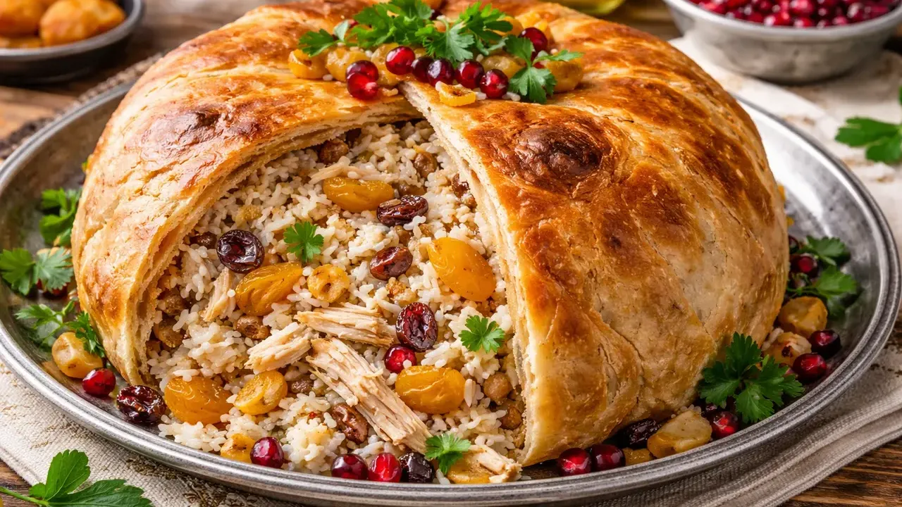 Şah pilavı, tavuk eti, kuru meyveler ve baharatlarla zenginleştirilen iç harcın pirinçle buluştuğu, dışı yufkayla kaplanarak fırında pişirilen gösterişli bir pilav çeşidi olarak öne çıkıyor. Hem lezzeti hem de sunumuyla dikkat çeken bu özel tarif, sofralarda farklı bir alternatif arayanların ilgisini çekiyor.