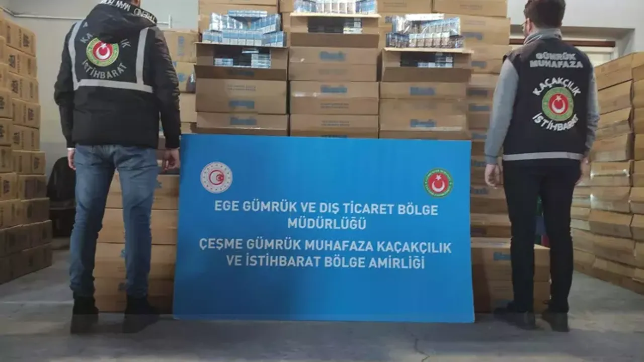 TIR'da yapılan aramada piyasa değeri 50 milyon TL olduğu belirtilen 1 milyon paket kaçak sigara ele geçirildi. Araçtaki 2 kişi hakkında 'Kaçakçılıkla Mücadele Kanunu'na muhalefet' suçundan tutanak tutulup, işlem yapıldı. Çeşme Cumhuriyet Başsavcılığı, olayla ilgili soruşturma başlattı.