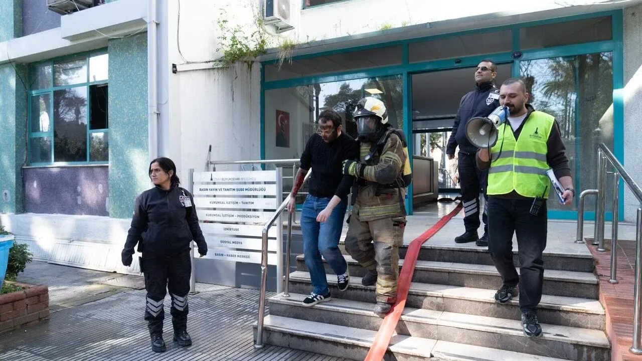 İzmir Büyükşehir Belediyesi, kurum personelinin afetlere hazırlık kapasitesini artırmak amacıyla deprem ve yangın senaryolu kapsamlı bir tatbikat gerçekleştirdi. Afet İşleri ve Risk Yönetimi Dairesi Başkanlığı koordinasyonunda düzenlenen uygulamada, çalışanlar gerçeğe yakın bir senaryo eşliğinde hem deprem anını hem de yangın sonrası tahliye sürecini deneyimledi. Tatbikatın son adresi Basın, Yayın ve Halkla İlişkiler Dairesi Başkanlığı oldu. Senaryo kapsamında İzmir merkezli 6,8 büyüklüğünde bir deprem meydana geldiği duyuruldu. Personel, 40 saniye boyunca “çök-kapan-tutun” yöntemiyle korunmaya alındı. Sarsıntının ardından bina içindeki sistem odasında elektrik kaynaklı yangın çıktığı bilgisi paylaşıldı ve alarm sistemi devreye sokuldu.
