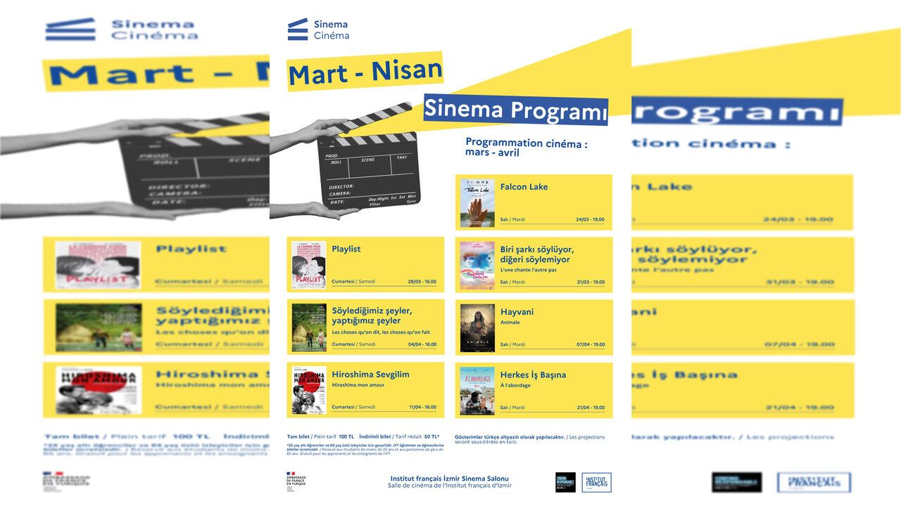 Program kapsamında filmler orijinal dilinde ve Türkçe altyazılı olarak izleyiciyle buluşacak. Gösterimler, Institut français İzmir sinema salonunda Salı günleri saat 19.00’da, Cumartesi günleri ise saat 16.00’da gerçekleştirilecek. Farklı dönem ve anlatı biçimlerini bir araya getiren seçki, izleyicilere sinemanın farklı yönlerini keşfetme imkânı sunuyor.