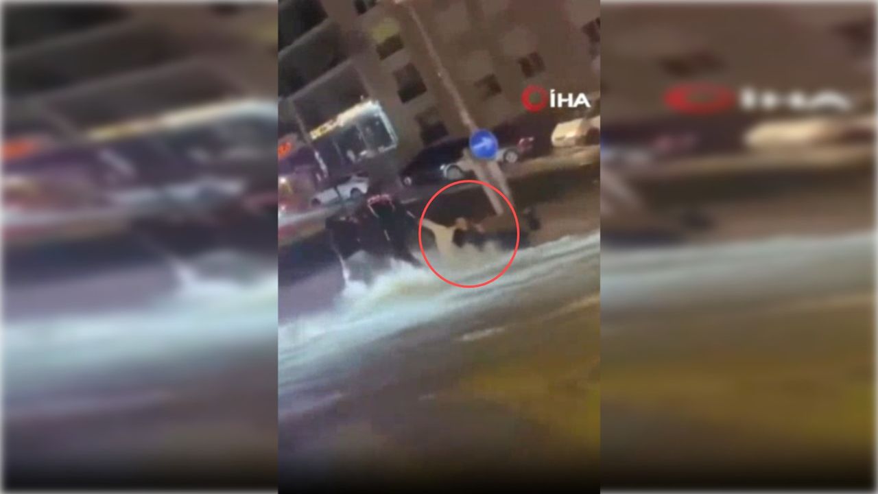 Yağışın en yoğun olduğu anlarda yaşanan bir olay ise büyük panik yarattı. Şiddetli akıntının oluştuğu bir caddede yürümeye çalışan bir vatandaş, dengesini kaybederek suya kapıldı. Akıntıyla sürüklenen kişiyi fark eden bir polis memuru ve çevrede bulunan bir vatandaş, zaman kaybetmeden müdahale etti. Kısa sürede gerçekleşen kurtarma operasyonuyla vatandaş güvenli alana çıkarıldı.