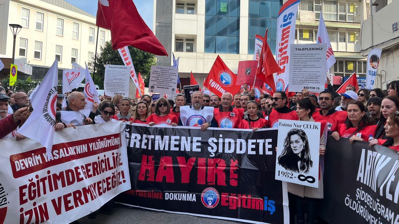 Eğitim yuvalarının iktidarın, gerici yapıların, sermayenin ve şiddetin değil; bilimin, laikliğin ve özgürlüğün mekanı olması gerektiğine dikkat çeken Birleşik Kamu-İş İzmir İl Başkanı Barış Düdü, “Kaybettiğimiz meslektaşımıza rahmet, ailesine ve öğrencilerine sabır diliyoruz. Yaralılarımıza acil şifalar diliyoruz. Buradan bir kez daha ilan ediyoruz: Öğrencilerimizin ve eğitim emekçilerinin can güvenliği sağlanıncaya kadar susmayacağız. Mücadele edeceğiz. Çünkü bir ülkenin geleceği, öğretmenine verdiği değerle ölçülür. Eğer eğitim kamusal bir hak olmaktan çıkarılıp piyasalaştırılırsa, okullar siyasal ve ideolojik yuvalanma alanına çevrilir ve liyakatsiz yöneticilerle doldurulursa benzer cinayetlerin yaşanılması kaçınılmaz olur. O nedenle ‘Eğitimde Şiddet Yasası’ derhal çıkarılmalı. Artık öğretmenler ölüm korkusuyla değil, onurla ve güven içinde ders anlatmak istiyor” şeklinde konuştu.