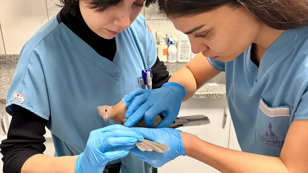 Veteriner hekimler tarafından yapılan muayenede, güvercinin sağ kanadında açık yara ve sağ göz çevresinde travmatik bulgular tespit edildi. Yapılan kontrollerde kırık olmadığı belirlendi. Yaraları temizlenen güvercinin tedavisi gerçekleştirildi. Tedavi sürecinin ardından güvercinin Doğa Koruma ve Milli Parklar İzmir Şube Müdürlüğü’ne teslim edileceği bildirildi.