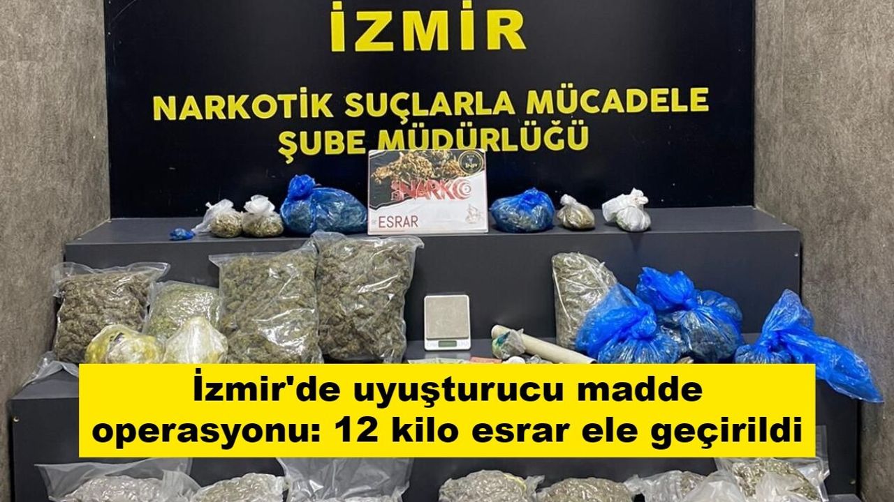 İzmir Emniyet Müdürlüğü Narkotik Suçlarla Mücadele Şube Müdürlüğü ve İstihbarat Şube Müdürlüğü ekiplerince, Buca ve Narlıdere ilçelerinde bulunan 2 ayrı adreste yüklü miktarda uyuşturucu madde bulundurulduğuna yönelik bilgi edinildi. Ekipler tarafından adreslerde yapılan aramalarda; 12 kilo 379 gram yasaklı madde ve 1 hassas terazi ele geçirildi. Olayla ilgili gözaltına alınan 1 zanlı, emniyetteki işlemlerinin ardından çıkarıldığı mahkemece tutuklandı.