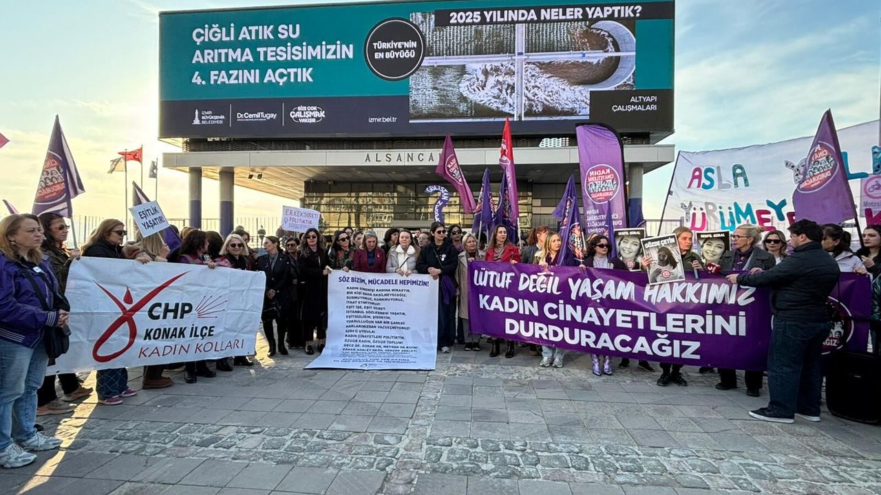İzmir’de 8 Mart Dünya Emekçi Kadınlar Günü dolayısıyla Alsancak İskelesi önünde düzenlenen etkinlikte kadın hakları vurgulandı. Kadın Cinayetlerini Durduracağız Platformu ile Cumhuriyet Halk Partisi İzmir İl Kadın Kolları’nın katıldığı etkinlikte cinsiyet eşitsizliğine karşı mücadele çağrısı yapıldı.