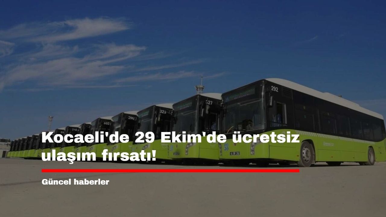 29 Ekim Pazar günü, Cumhuriyet Bayramı dolayısıyla Kocaeli'de otobüs, raylı sistemler ve deniz ulaşımı tamamen ücretsiz olacak.