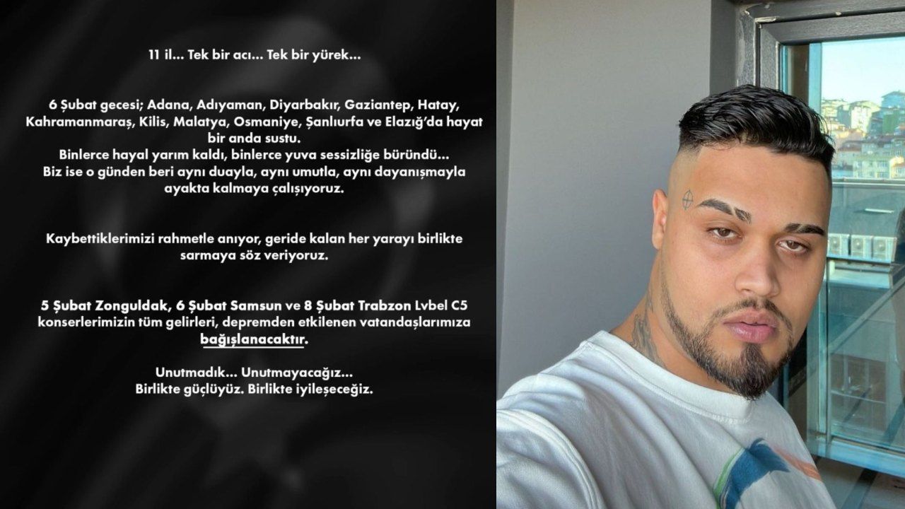 Lvbel C5, bağış kapsamındaki konser tarihlerini de kamuoyuyla paylaştı. Buna göre 5 Şubat’ta Zonguldak’ta, 6 Şubat’ta Samsun’da ve 8 Şubat’ta Trabzon’da düzenlenecek konserlerin tüm geliri depremzedelere bağışlanacak.