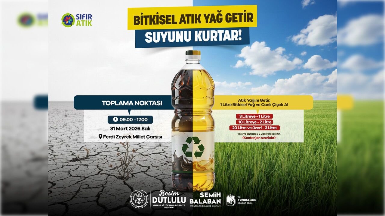 Manisa Büyükşehir Belediyesi, çevre kirliliğiyle mücadele kapsamında yeni bir çevre kampanyası başlattı. Yunusemre Belediyesi iş birliğiyle yürütülen çalışma, evsel atık yağların doğaya zarar vermesini önlemeyi ve geri dönüşüm yoluyla ekonomiye kazandırılmasını amaçlıyor. Manisa Büyükşehir Belediyesi İklim Değişikliği ve Sıfır Atık Dairesi Başkanlığı koordinasyonunda hayata geçirilen kampanya, su kaynaklarını tehdit eden atık yağ kirliliğine karşı farkındalık oluşturmayı hedefliyor. Proje, Manisa Büyükşehir Belediye Başkanı Besim Dutlulu ile Yunusemre Belediye Başkanı Semih Balaban’ın öncülüğünde yürütülüyor.