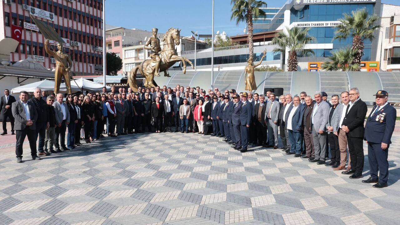 Menemen’de 19 Ekim Muhtarlar Günü, kent kimliğini güçlendiren bir dayanışma ruhuyla kutlandı. Etkinlikler, Cumhuriyet Meydanı’ndaki çelenk sunumu ile başladı. Törene; Menemen Belediye Başkanı Aydın Pehlivan, Menemen Kaymakamı Vedat Yılmaz, Menemen Muhtarlar Derneği Başkanı Nevzat Güven’in yanı sıra mahalle muhtarları, azalar, gaziler ve vatandaşlar katıldı. Anıta çelenk sunulmasının ardından toplu fotoğraf çekimiyle tören tamamlandı.