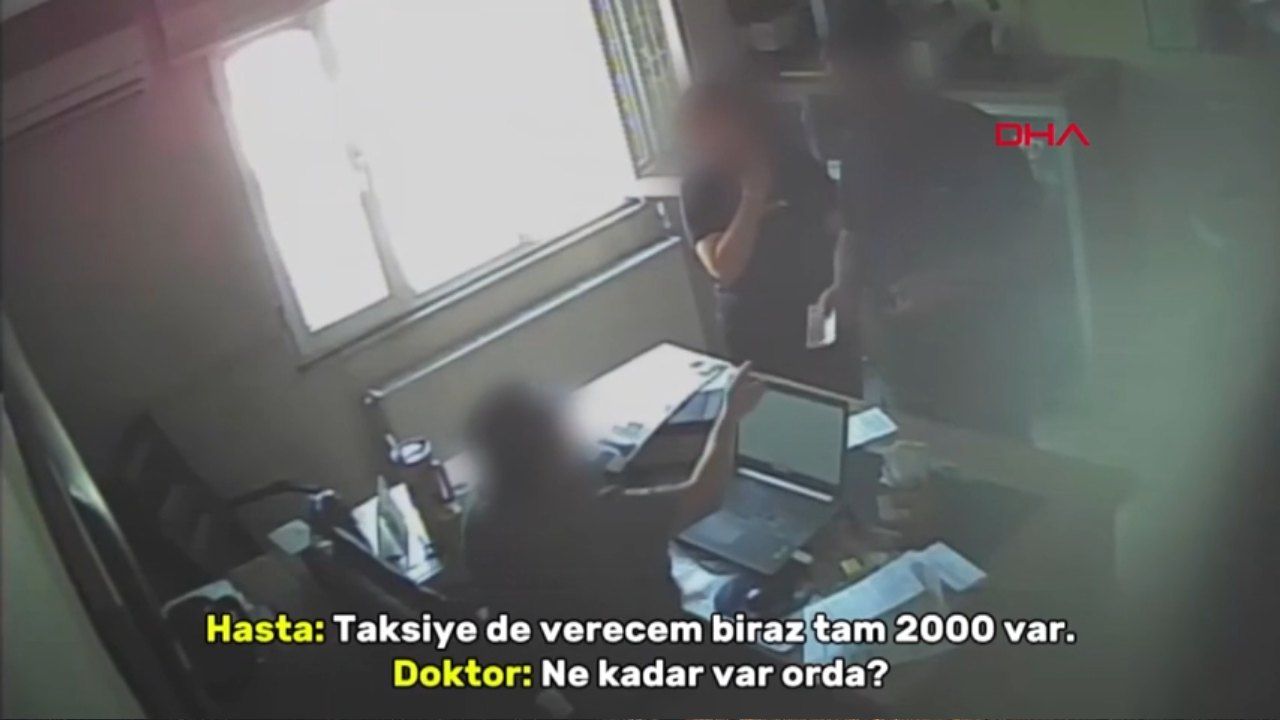 Sahte sağlık raporu soruşturmasında çarpıcı gelişme: Doktor M.T. ve olaya karıştığı tespit edilen 5 kişi gözaltına alındı. Şüpheli doktorun para aldığı görüntüler kameraya yansıdı.