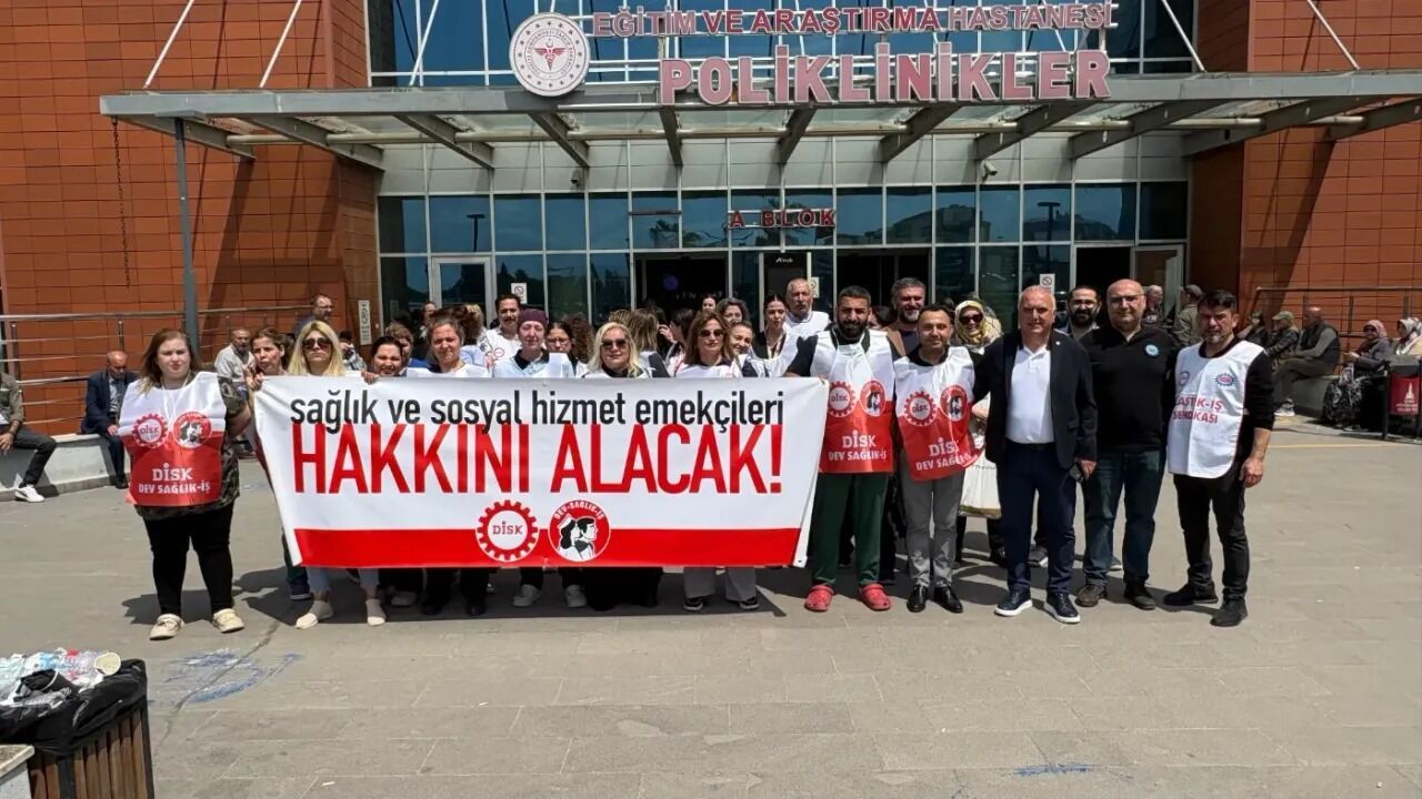 İzmir’de sağlık ve sosyal hizmet işçileri, çalışma koşulları ve hak kayıplarına dikkat çekmek amacıyla Çiğli Eğitim ve Araştırma Hastanesi önünde bir araya geldi. DİSK’e bağlı Dev Sağlık-İş öncülüğünde gerçekleştirilen eylemde, işçilerin talepleri kamuoyuna duyurulurken, sendikanın İzmir Şube Yönetimi'nden Deniz Kaya, sahadaki sorunları ve mücadelenin nedenlerini anlattı.