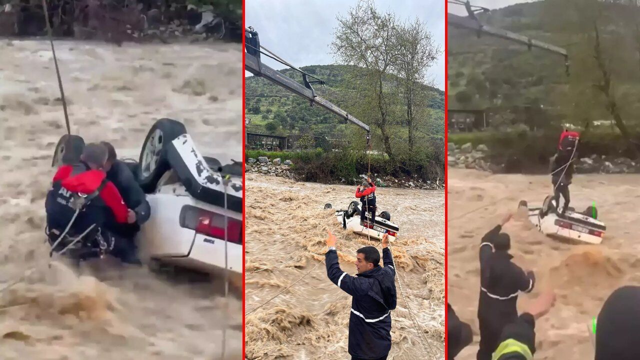 İhbar üzerine olay yerine AFAD, itfaiye, sağlık ve jandarma ekipleri sevk edildi. Ekipler, araçta mahsur kalan vatandaşları kurtarmak için çalışma başlattı. Yoğun çabalar sonucunda otomobil, vinç yardımıyla bulunduğu dere yatağından çıkarıldı.