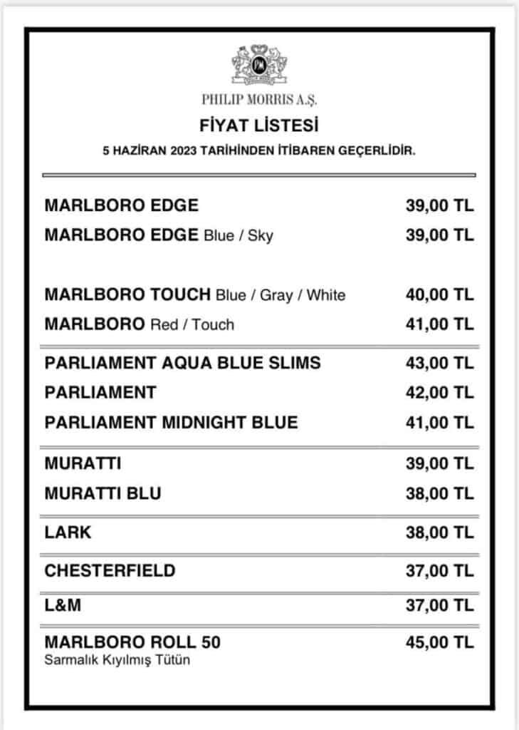 Bugünden itibaren geçerli olan zamlarla birlikte Philip Morris grubundaki sigaralar 37-45 TL bandında satışa sunulmuş olacak.