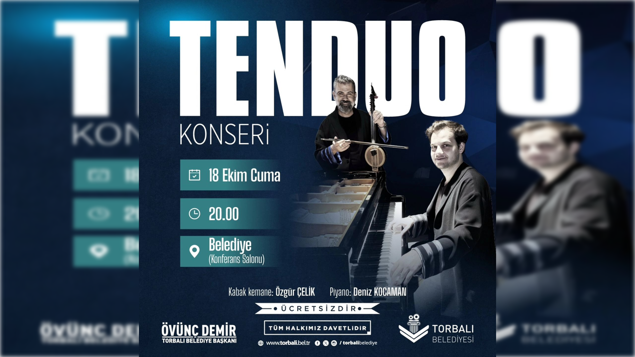 Torbalı Belediyesi, müzikseverler için 18 Ekim Cuma günü özel bir konser düzenliyor. Geleneksel Türk enstrümanı kabak kemane ile piyano ezgilerini bir araya getiren TEN Duo, müziğin sınırlarını zorlayarak izleyicilere unutulmaz bir akşam yaşatmayı amaçlıyor. Saat 20.00’de, Torbalı Belediyesi Konferans Salonu'nda sahne alacak olan Özgür Çelik ve Deniz Kocaman, iki farklı müzik dünyasını bir araya getirerek özel bir performans sergileyecek.