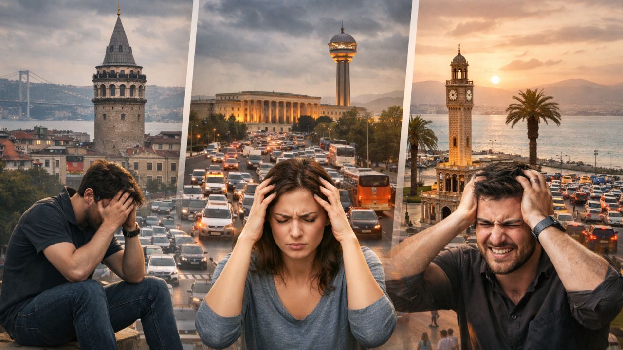 Araştırma bulgularına göre Türkiye’nin en stresli şehri İstanbul oldu. Kentteki yoğun nüfus, trafik sorunları ve yüksek yaşam maliyetlerinin stres seviyesini artıran temel unsurlar arasında yer aldığı belirtildi. Ayrıca günlük yaşam temposunun da bireylerin stres düzeyinde etkili olduğu ifade edildi.