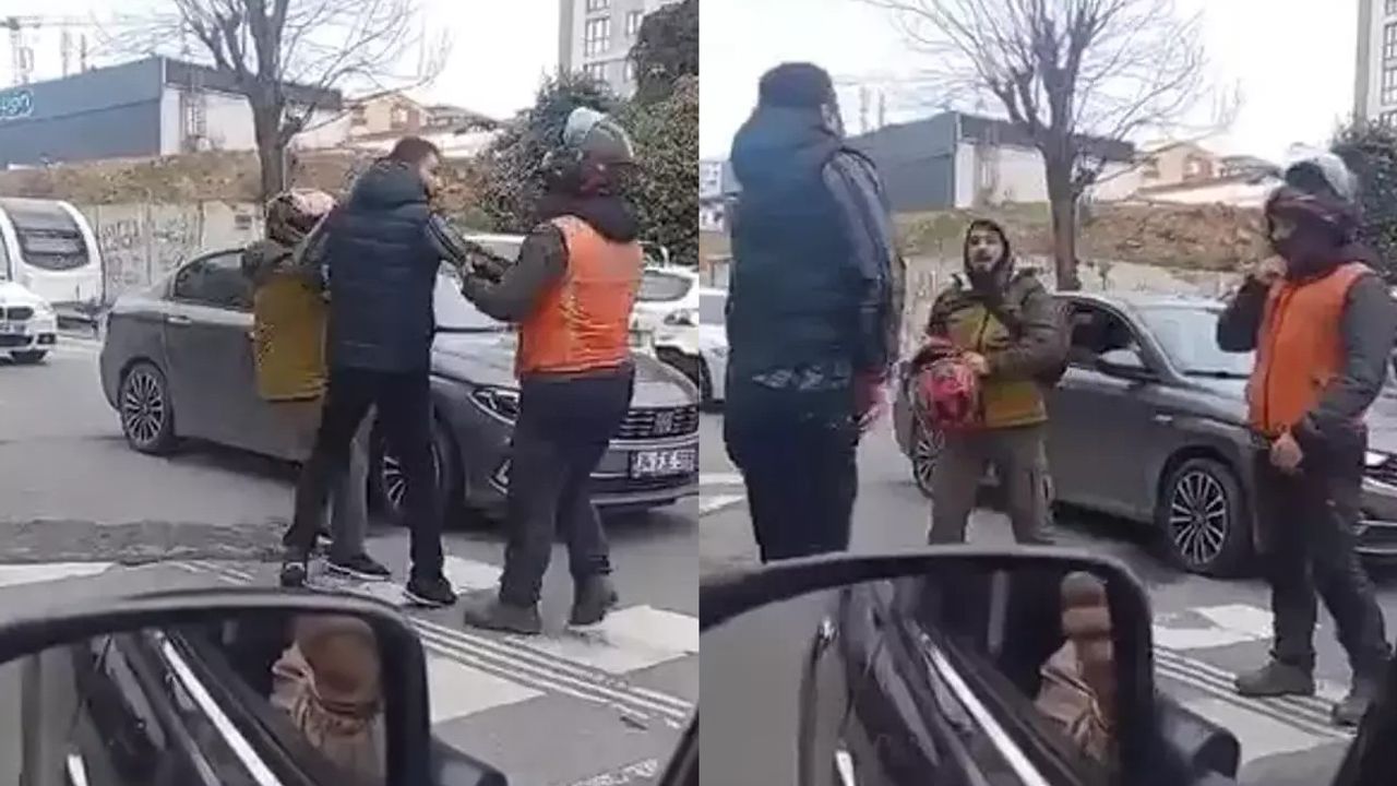 Ümraniye'de motosiklet sürücüsü ile otomobil sürücüsü arasında yol verme nedeniyle tartışma çıktı. Tartışma sırasında otomobil sürücüsü belinden silahını çıkartarak motosiklet sürücüsünü tehdit etti. Yaşanan tartışmayı başka bir sürücü cep telefonu kamerasıyla görüntüledi.