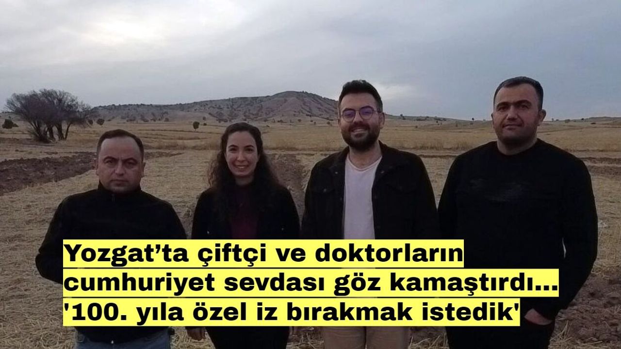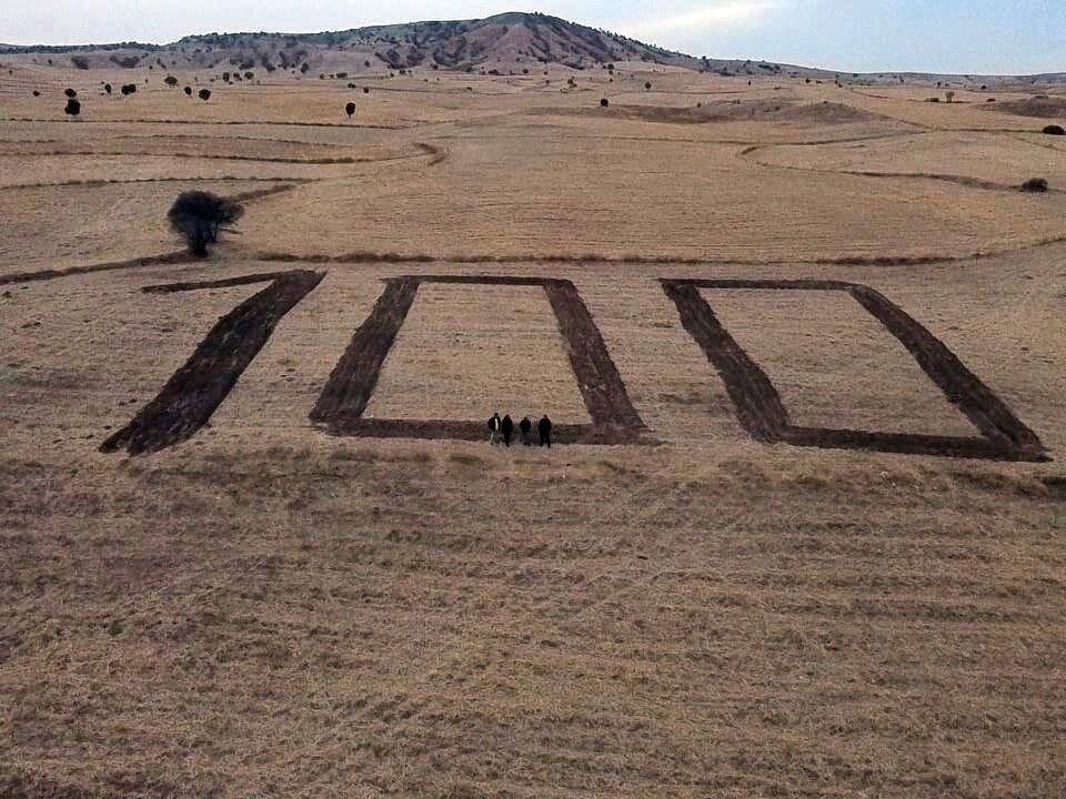 Erol Bağcı, "Ülkemizin de 100. yılını kutlamak amacıyla ne yapabiliriz diye konuştuk. Tarlamıza 100. yılı anmak için yazı yazmaya karar verdik. 3 arkadaş traktörümüzle 3 saat sonunda 15 dönüm alana 100. yılımızı yazdık" dedi. Diş hekimi Enes Şimşek, "Cumhuriyet'imizin 100. yılı için ne yapabiliriz diye düşünüyorduk. Erol Bağcı ile sabah karar verdik, traktörümüzü çalıştırdık tarlaya giderek 100. yıl yazısını yazdık. Ceddimizin kanlarıyla suladığı topraklara biz de böyle bir iz bırakmak istedik" şeklinde konuştu.