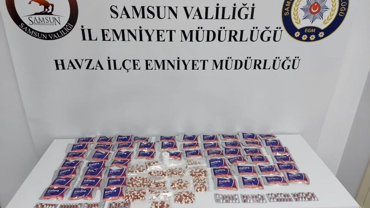 Havza İlçe Emniyet Müdürlüğü ekiplerince şüphe üzerine durdurulan bir araçta arama yapıldı. Yapılan aramada toplam 3 bin 359 adet sentetik ecza ele geçirildi.
